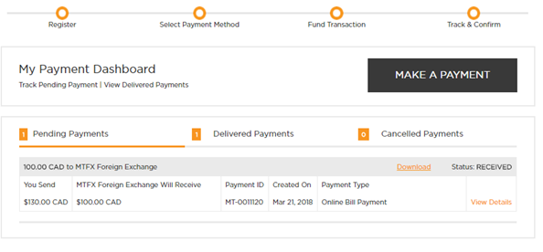 The PayMyTuition Dashboard allows you to view pending payments, delivered payments, cancelled payments and refunds. The dashboard displays: