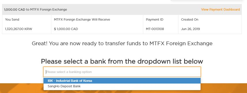 Once you have verified and confirmed your transaction, you will need to select a bank from the dropdown list.